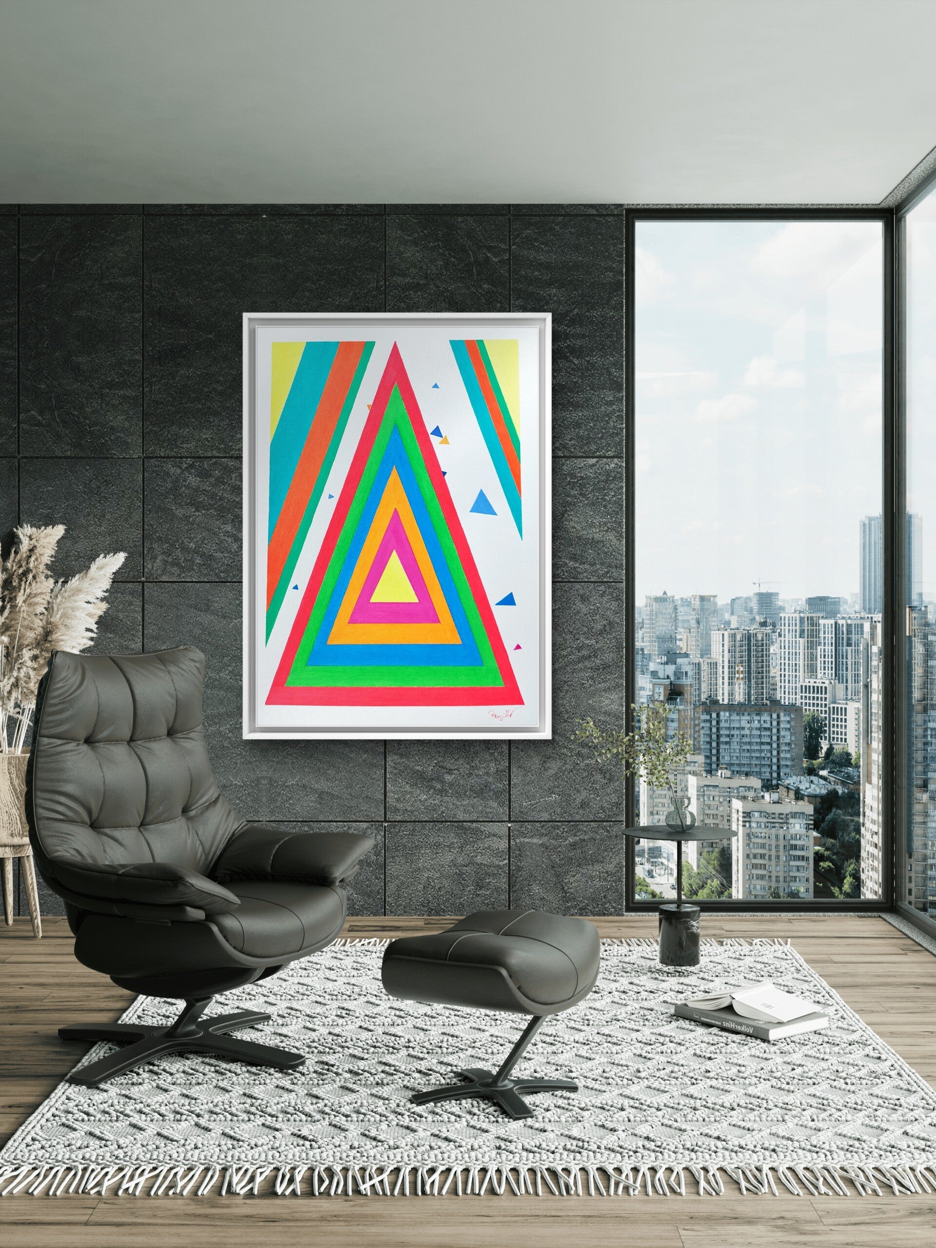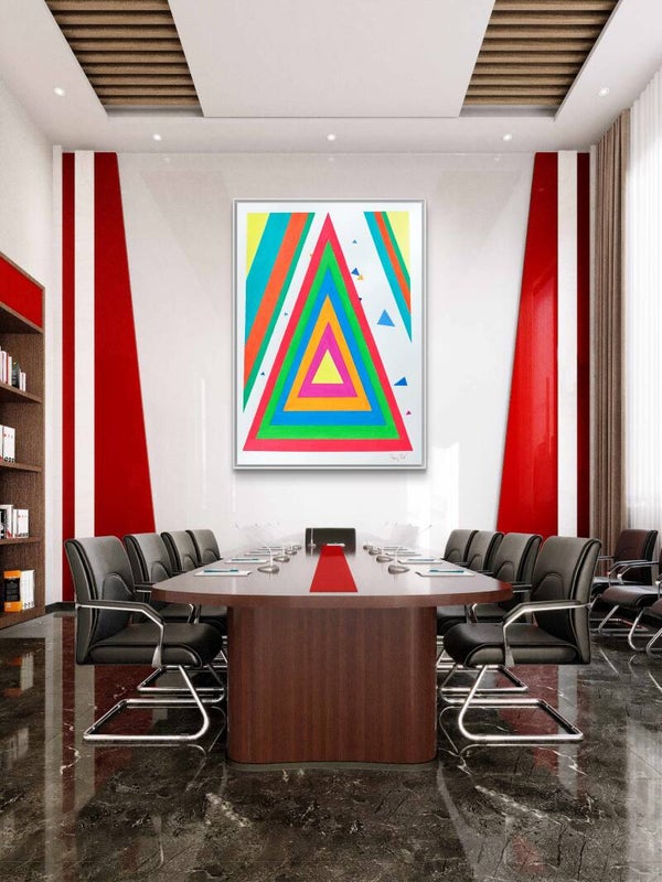 Dynamism, awareness, creativity, and spontaneous playfulness. If these qualities resonate with you or your clients, you will surely find pleasure in this painting. It can be a defining decorative element in your home or office. This modern painting can integrate well with a wide variety of interior styles. One thing is for sure: it will find its perfect place when paired with your style and imagination. Express yourself freely and decorate boldly!