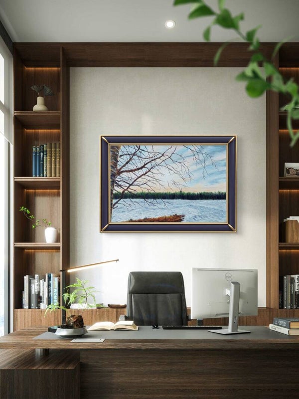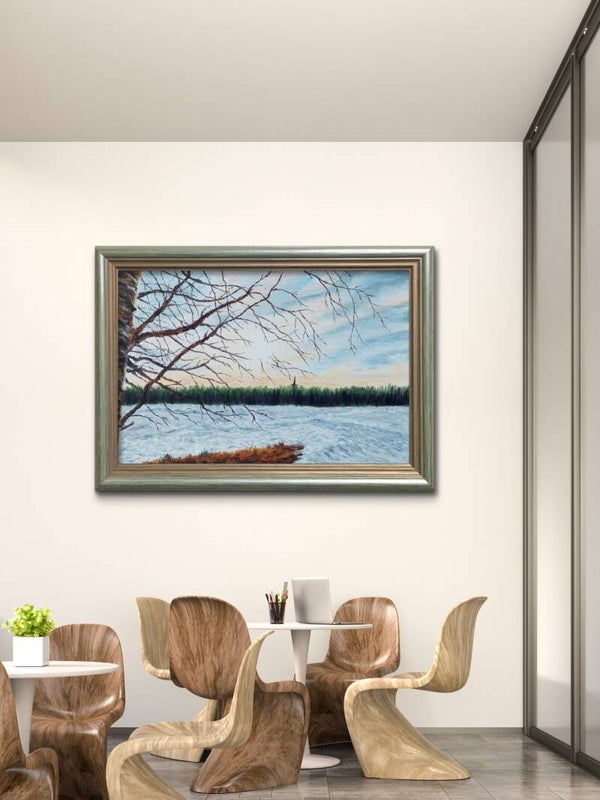 Running into the fresh snow and feeling the cool, invigorating air. Emerging from the depths of the forest and being warmed by the sun's rays. When I painted this picture, I experienced it all. My cells remembered. We celebrated life! We celebrated the present and the joy of movement. The joy of perception, too. In every landscape, there's always a human presence. Even if not depicted. Because the scene is judged beautiful from your point of view. It is you whom it makes smile. Your memories come alive when you look at it. I hope this serene winter landscape brings you joy in your home. It would make a nice gift for nature lovers.
